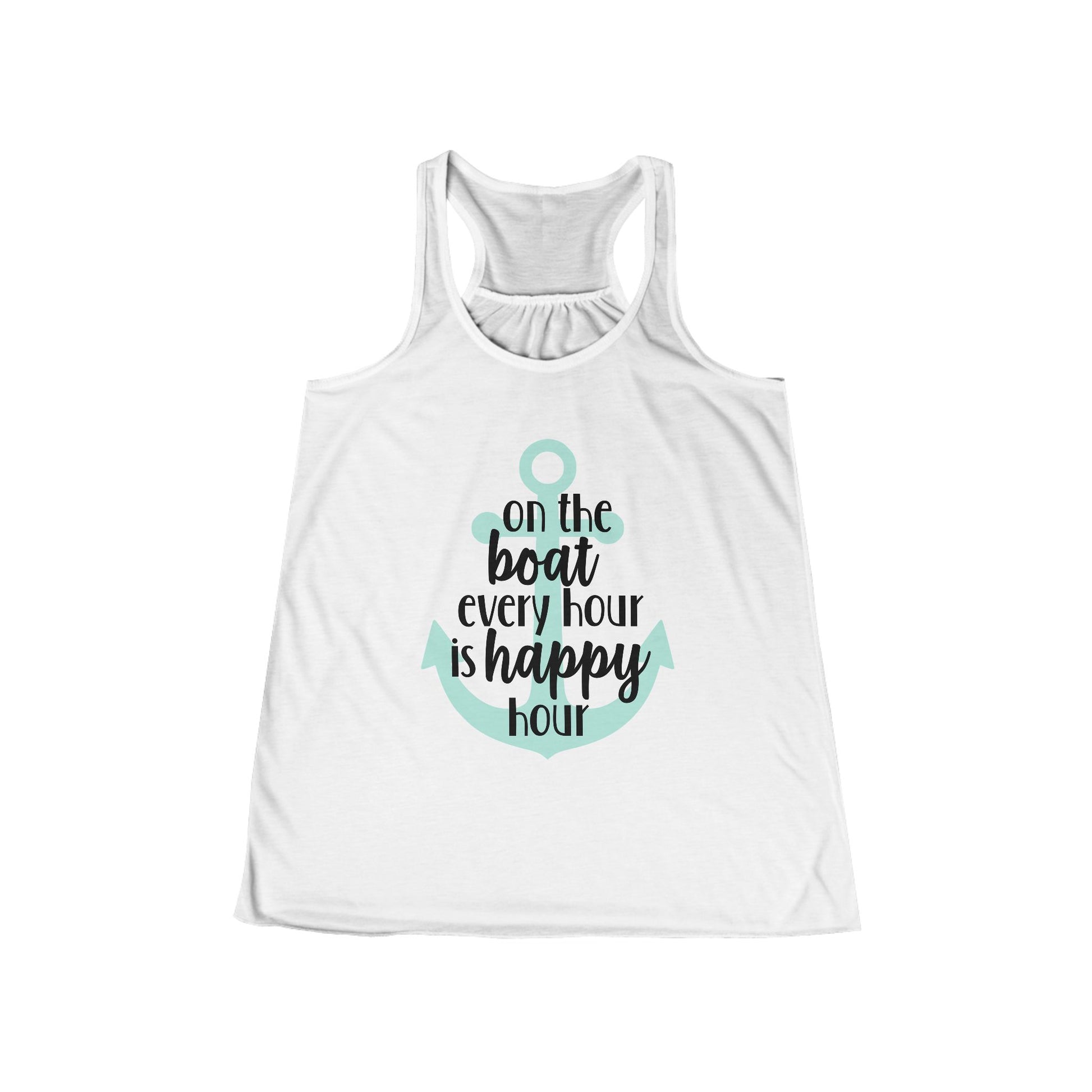 ⚓ "On the Boat, Every Hour is Happy Hour" Tank Top ⚓ - Women's Flowy Racerback Tank