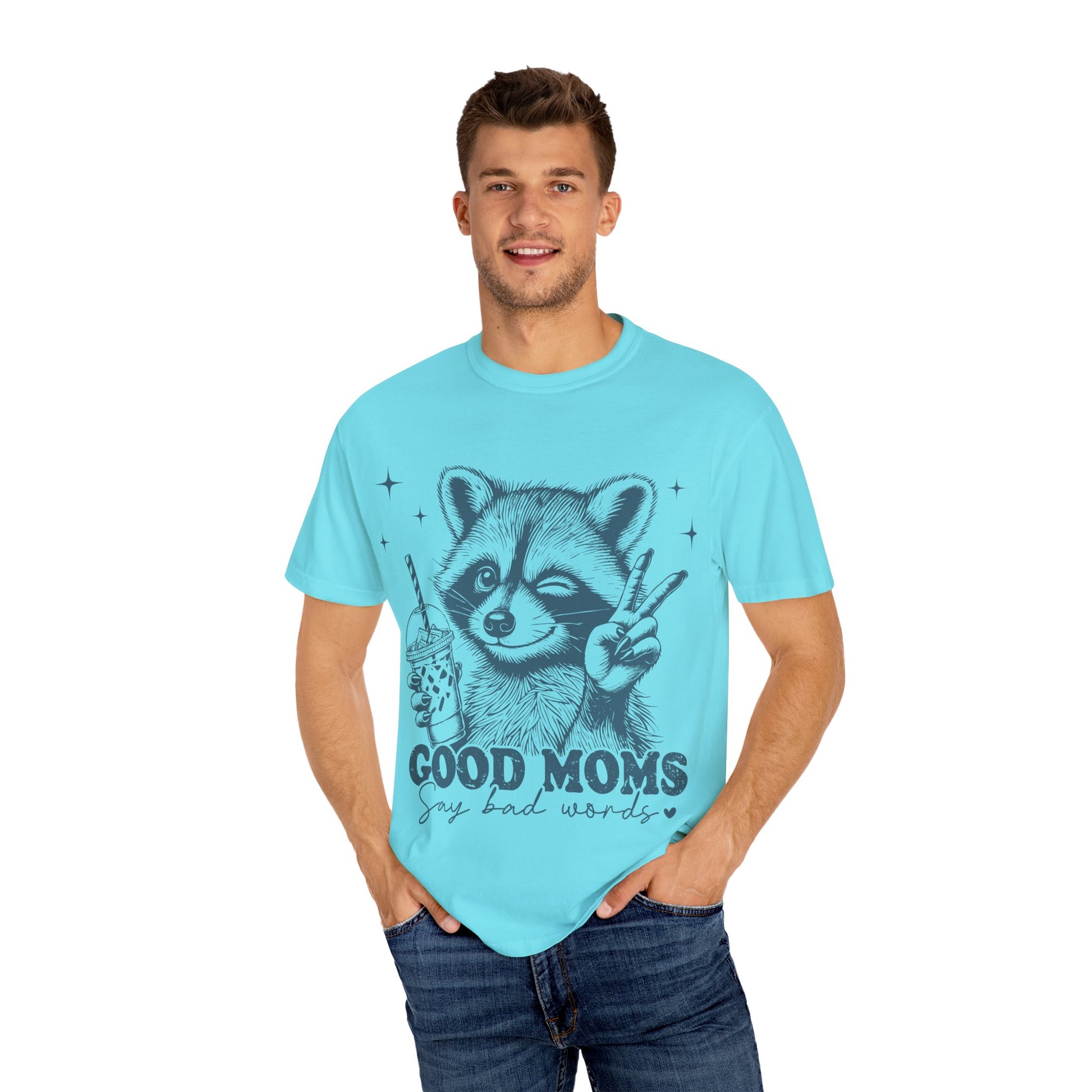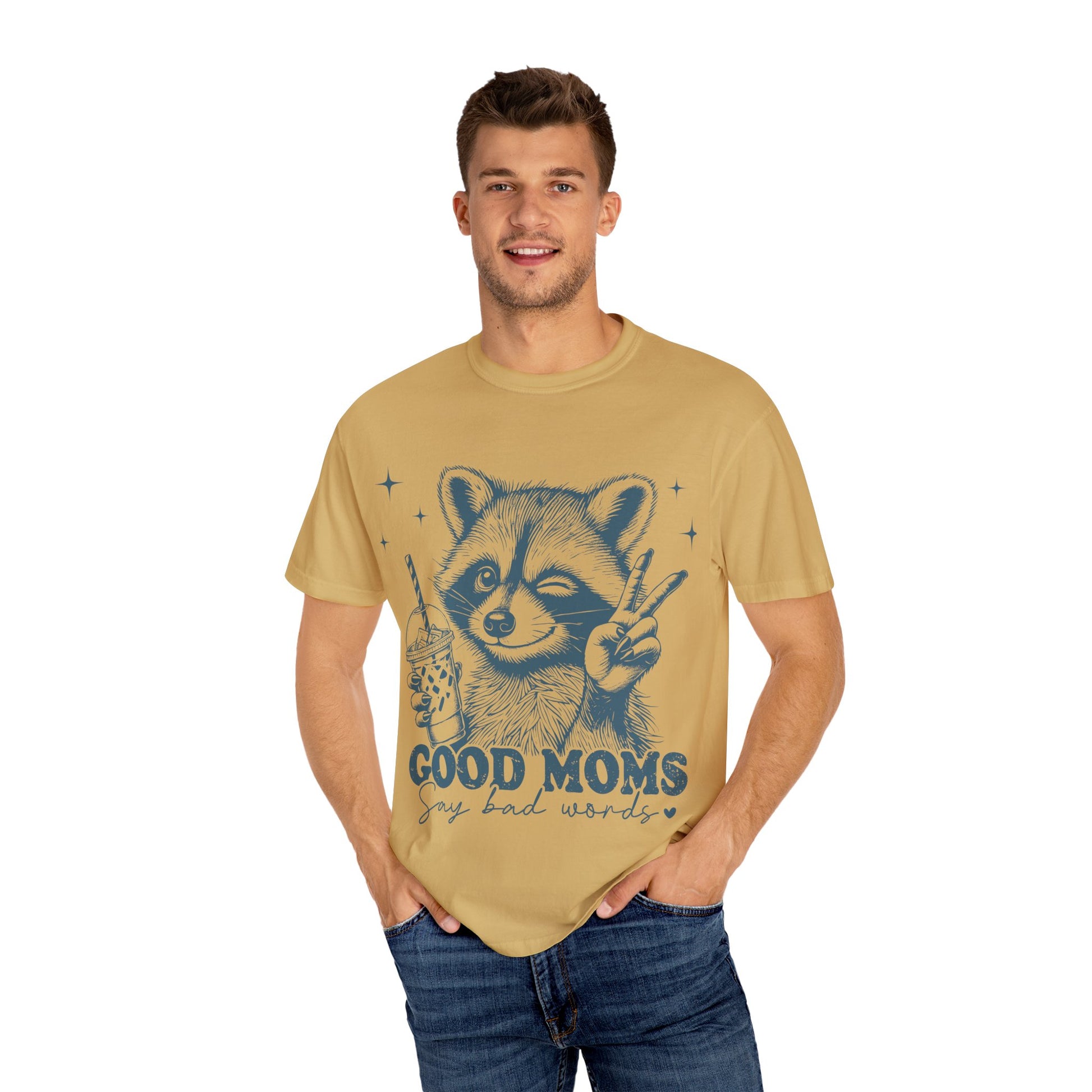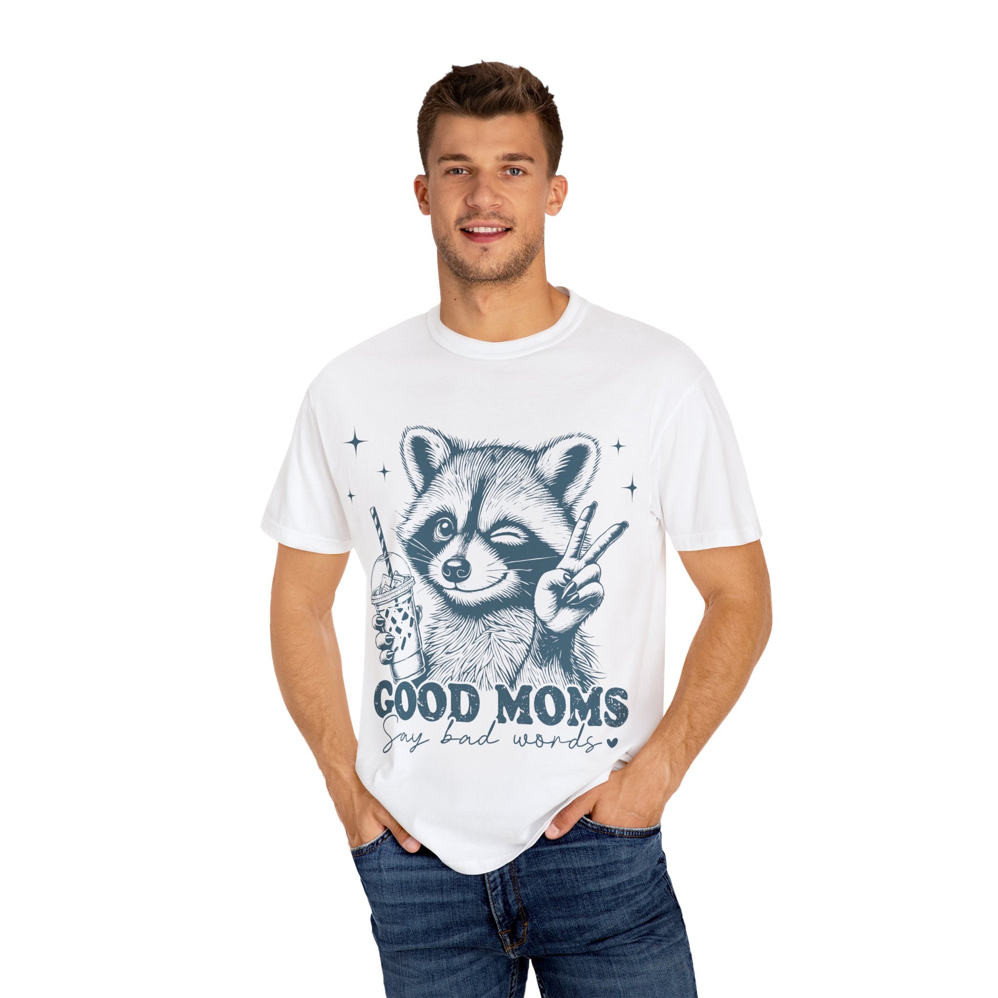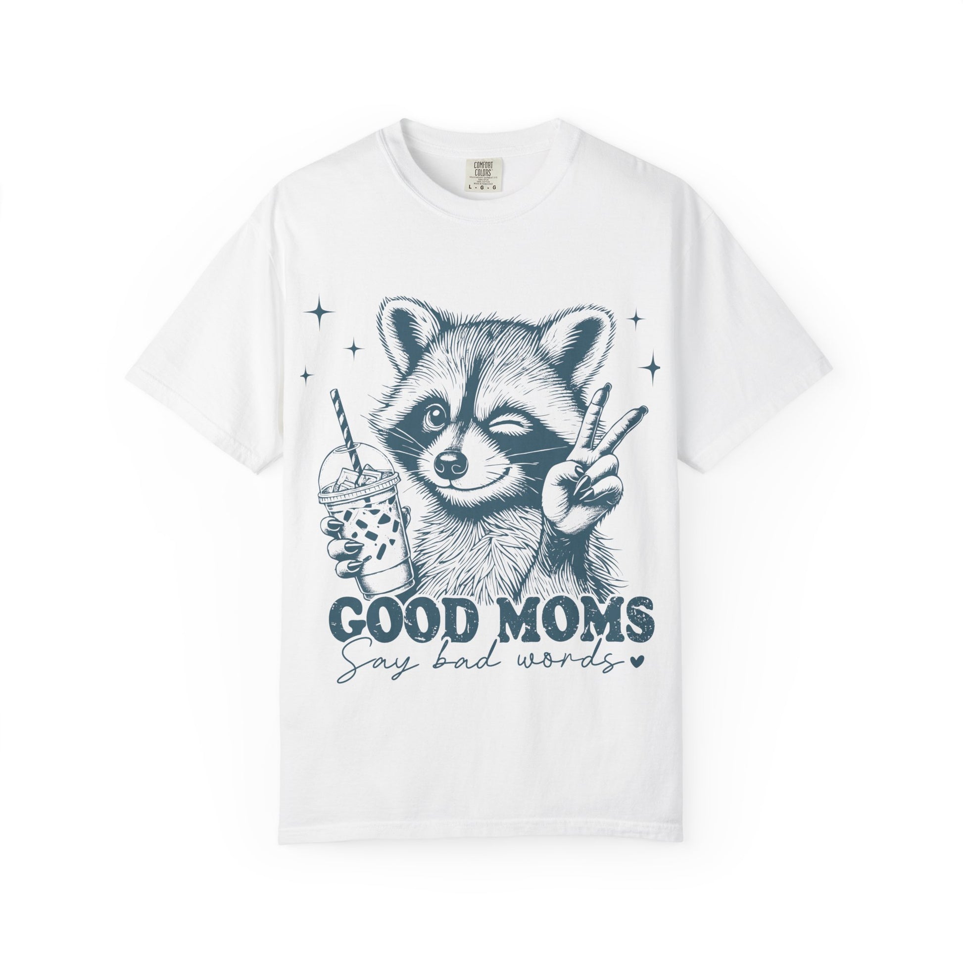 Perfectly imperfect, just like motherhood. This design features a rebellious little raccoon serving peace signs, boba tea, and a whole vibe—because let’s be real: good moms don’t have time for BS… but they’ve got time to drop a few four-letter words.
