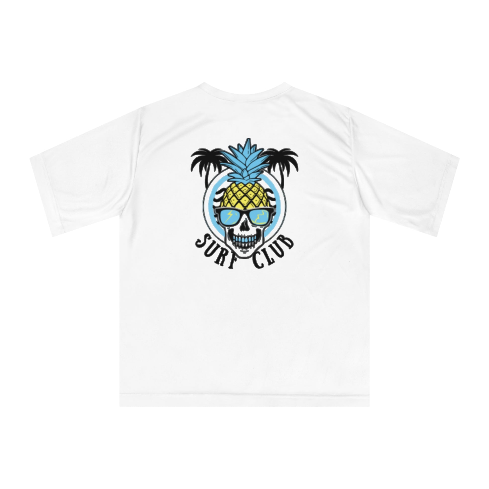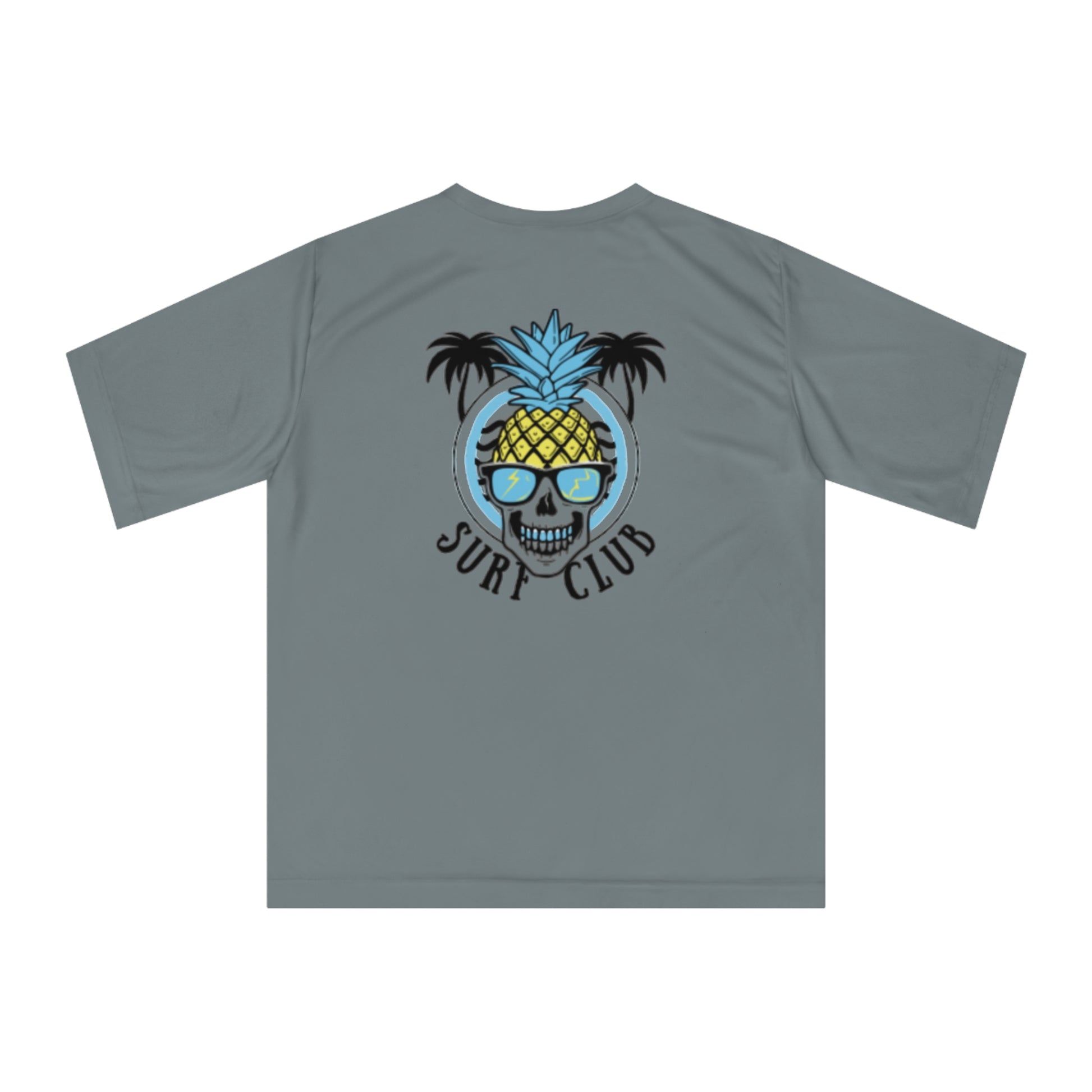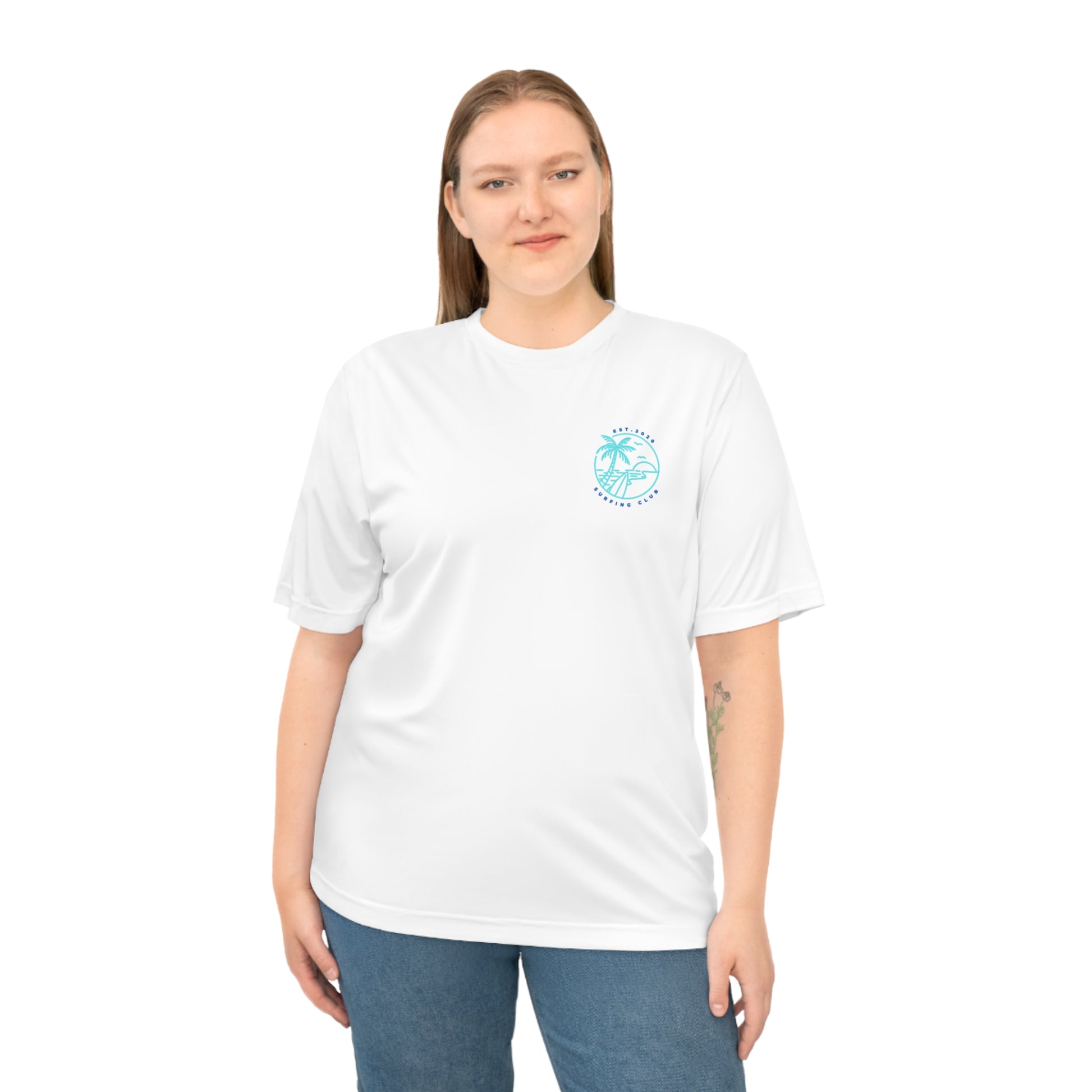 Surf Club Unisex Performance T-Shirt - This cool and comfy beach vibes t-shirt is perfect for those who love spending time at the beach, surfing, or just soaking up the sun. It provides UPF 40+ sun protection, is made of moisture-wicking material, and has an athletic fit for maximum comfort. Ideal for summer beach days, surfing enthusiasts, and outdoor activities.